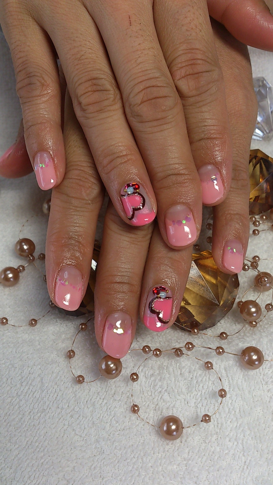 ハートの部分のピンクは、少しこいめで、大人かわいく仕上がりました![]()