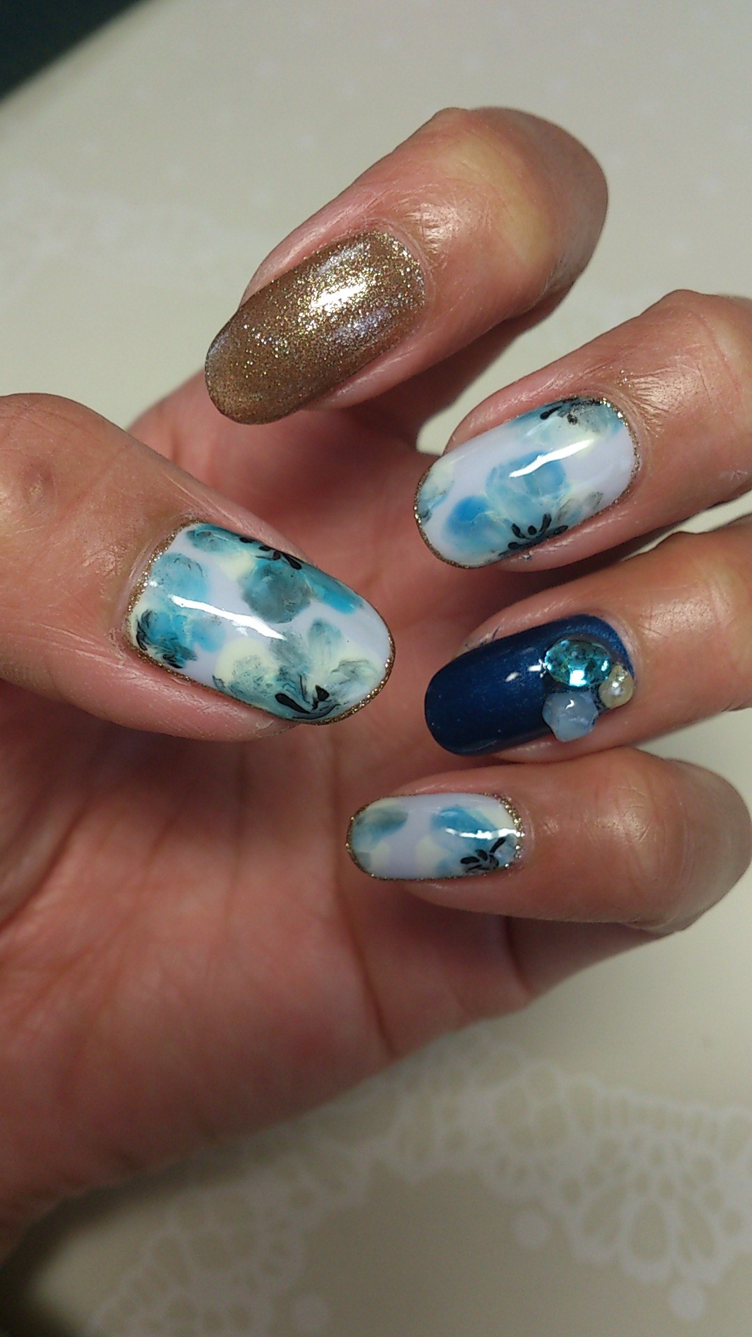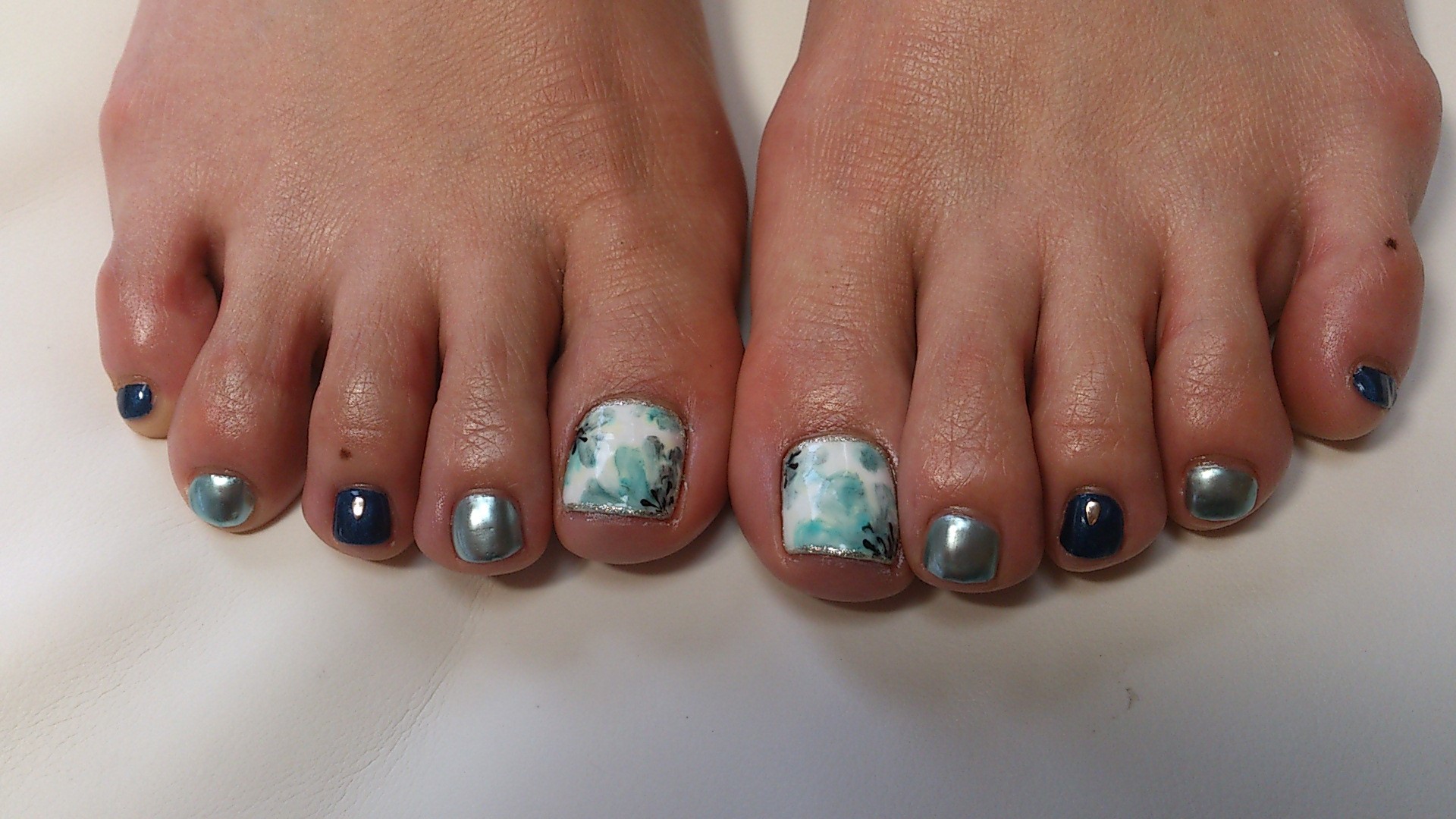 本日はフットネイルを、私の手のネイルとおそろいにしてくれました![]()