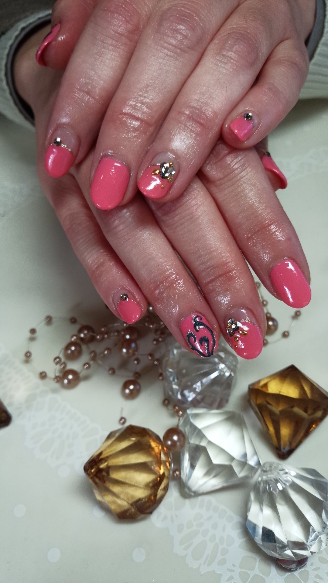 ピンクベースに、模様を…。表面プクッとの不思議なでデザインです![]()