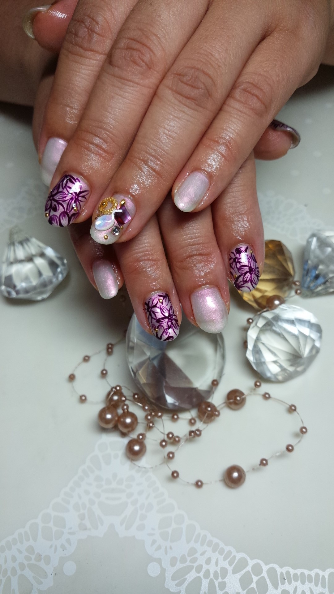 お客様は深みのあるパープルで お花を描かせて頂きましたpurple_heart