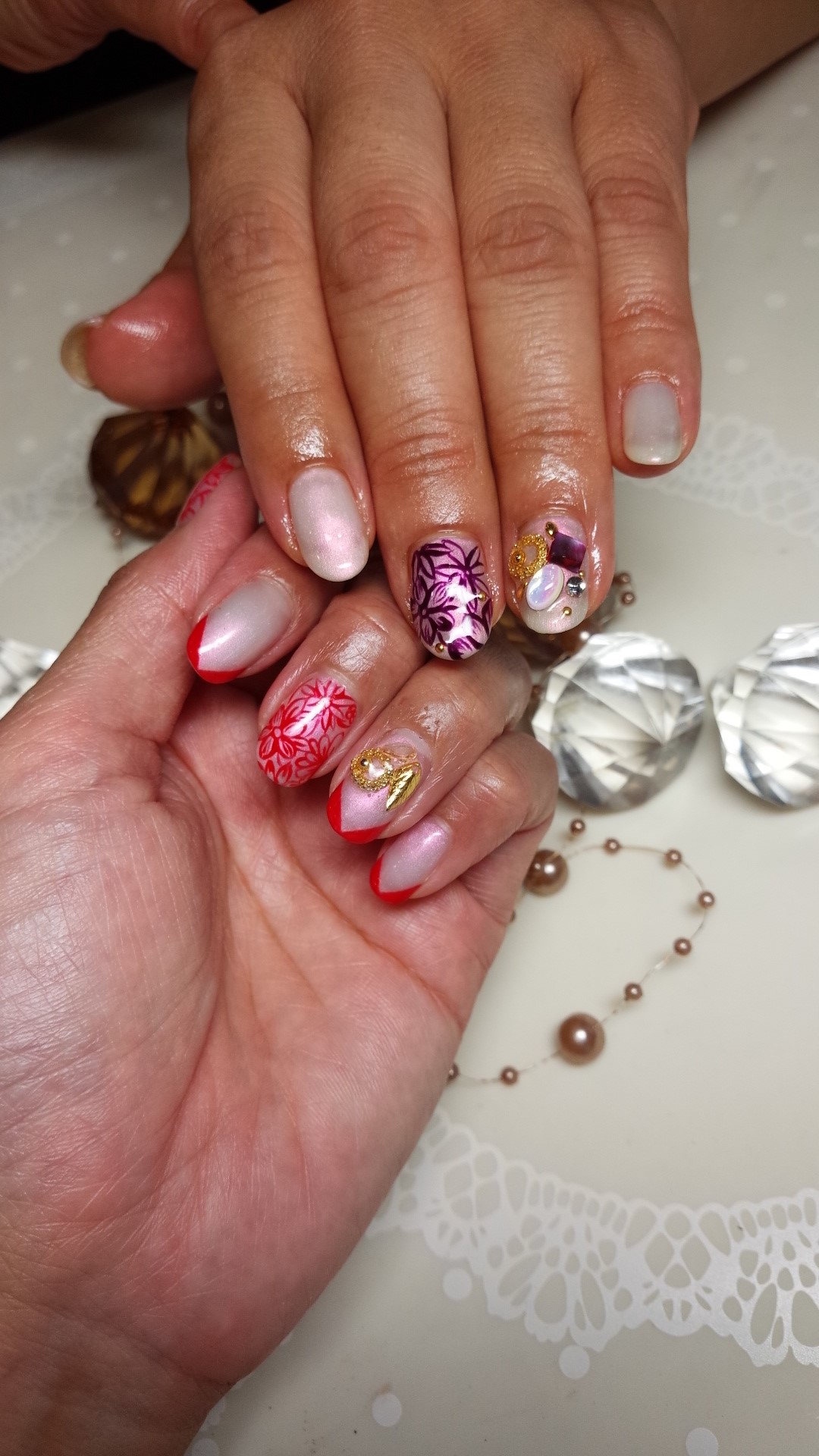 雑誌を参考にさせて頂きまして、私は赤いお花をしていますheart