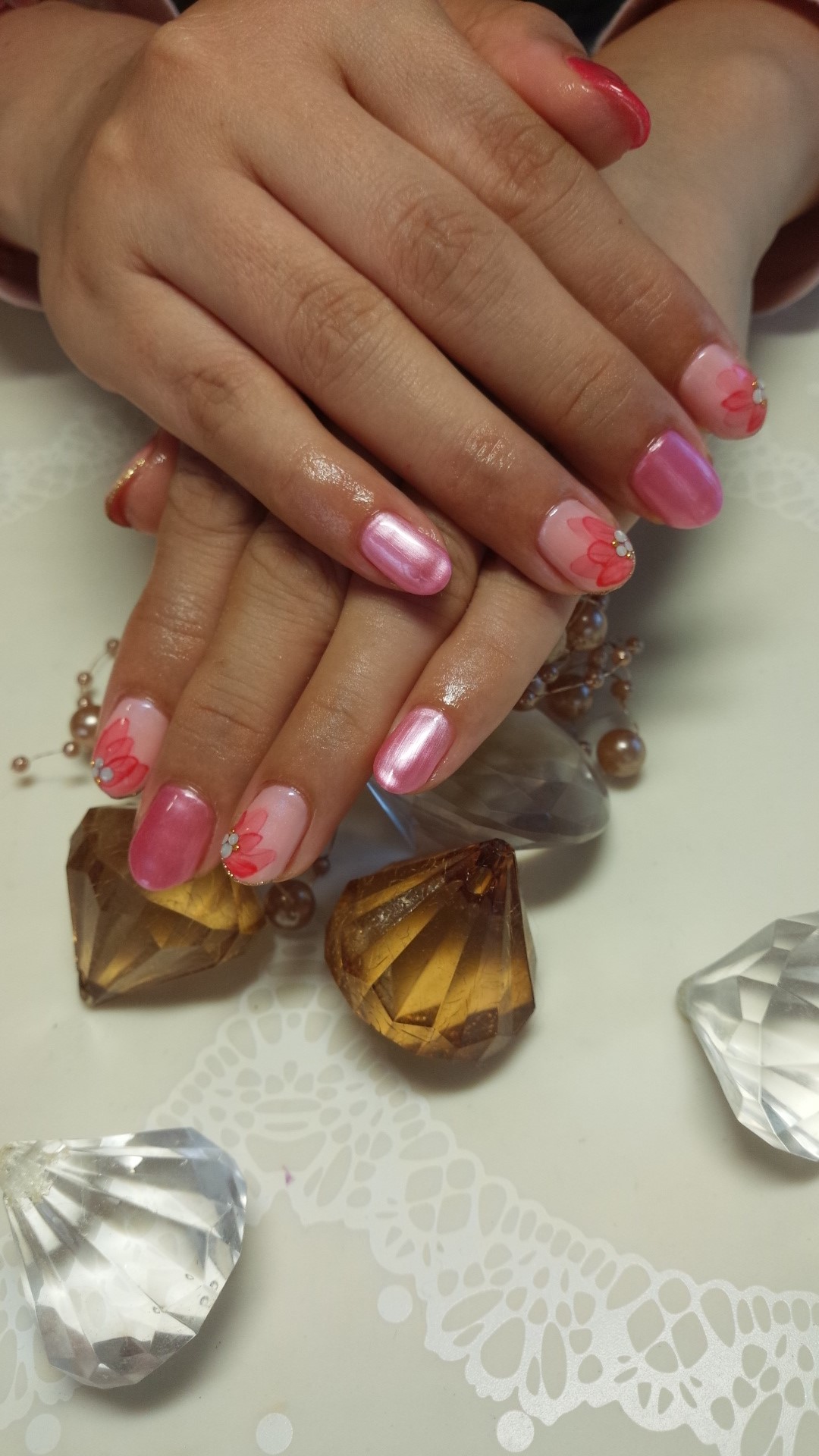 本日ご紹介のネイルは、水彩画風フラワーネイルですsparkling_heart