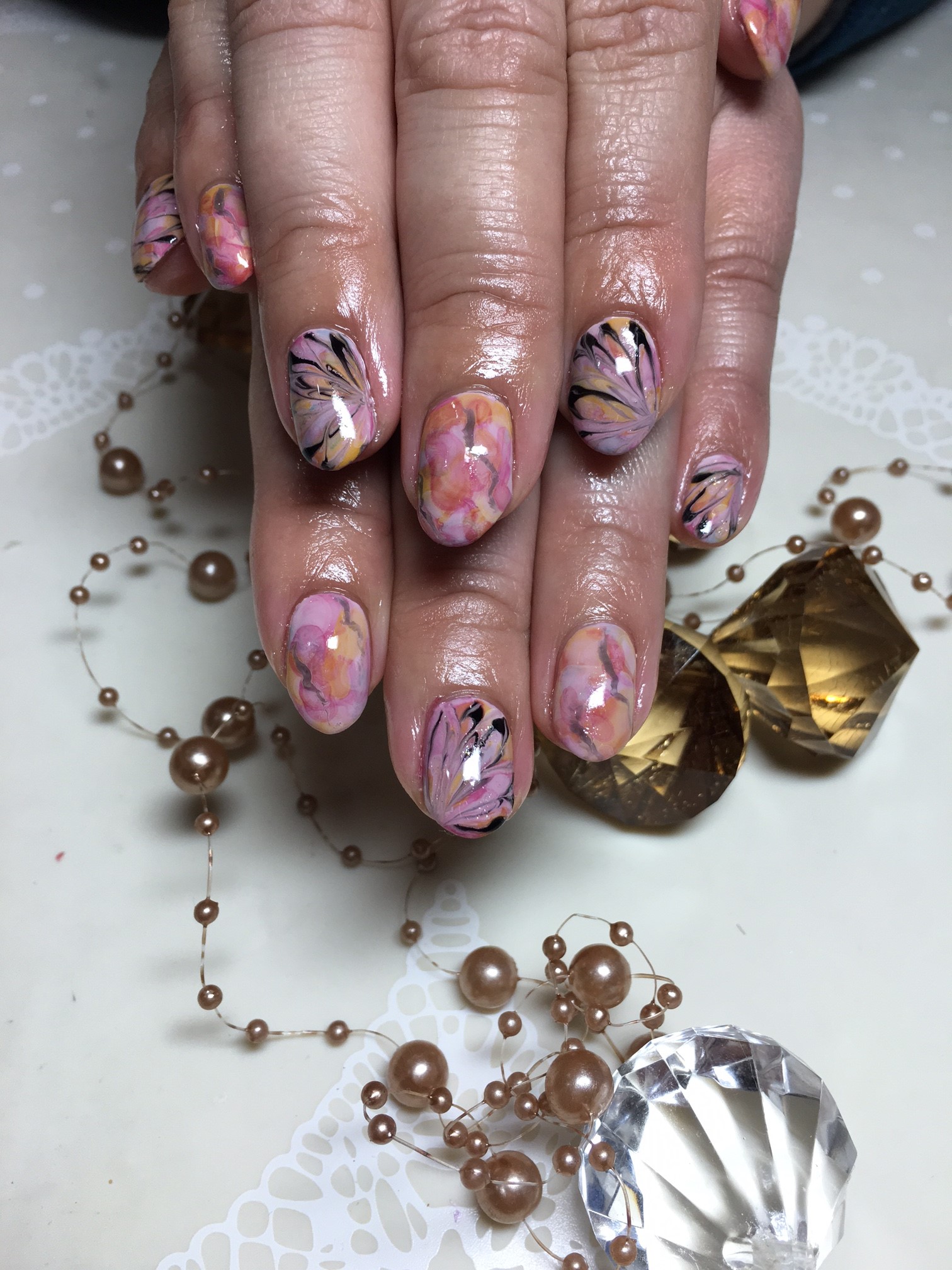 本日ご紹介のネイルは、オリエンタル大理石&レトロマーブルピーコックのミックスネイルです![]()