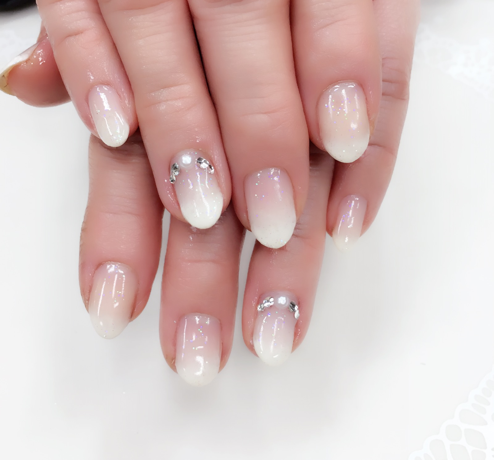 本日ご紹介のネイルは、ホワイトグラデーション&ストーンネイルです![]()