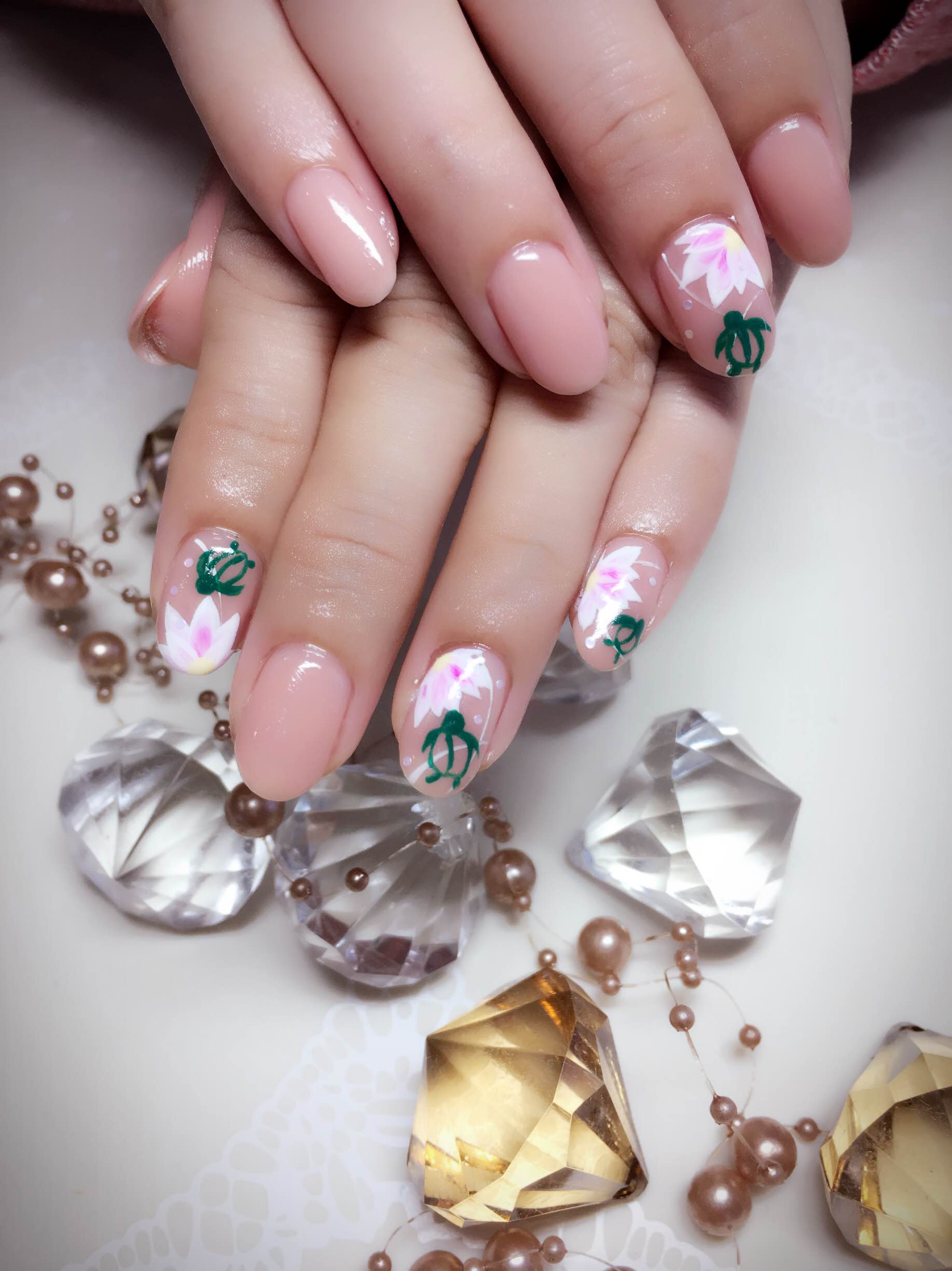 本日ご紹介のネイルは、ロータス&ホヌネイルです![]()