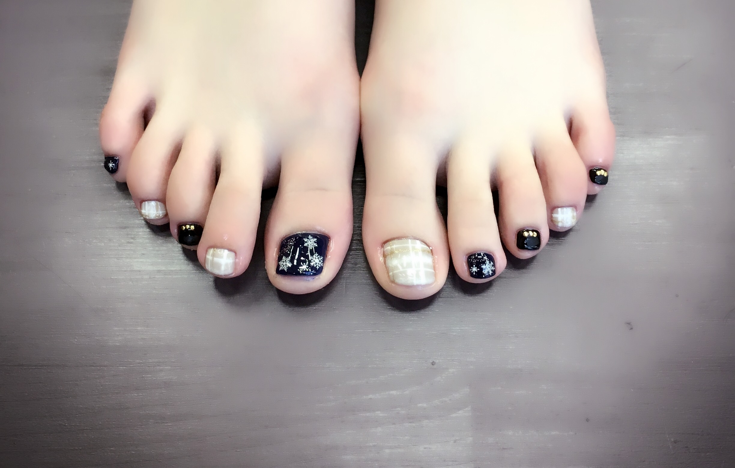 本日ご紹介のネイルは、スノーフレークフットネイルです![]()