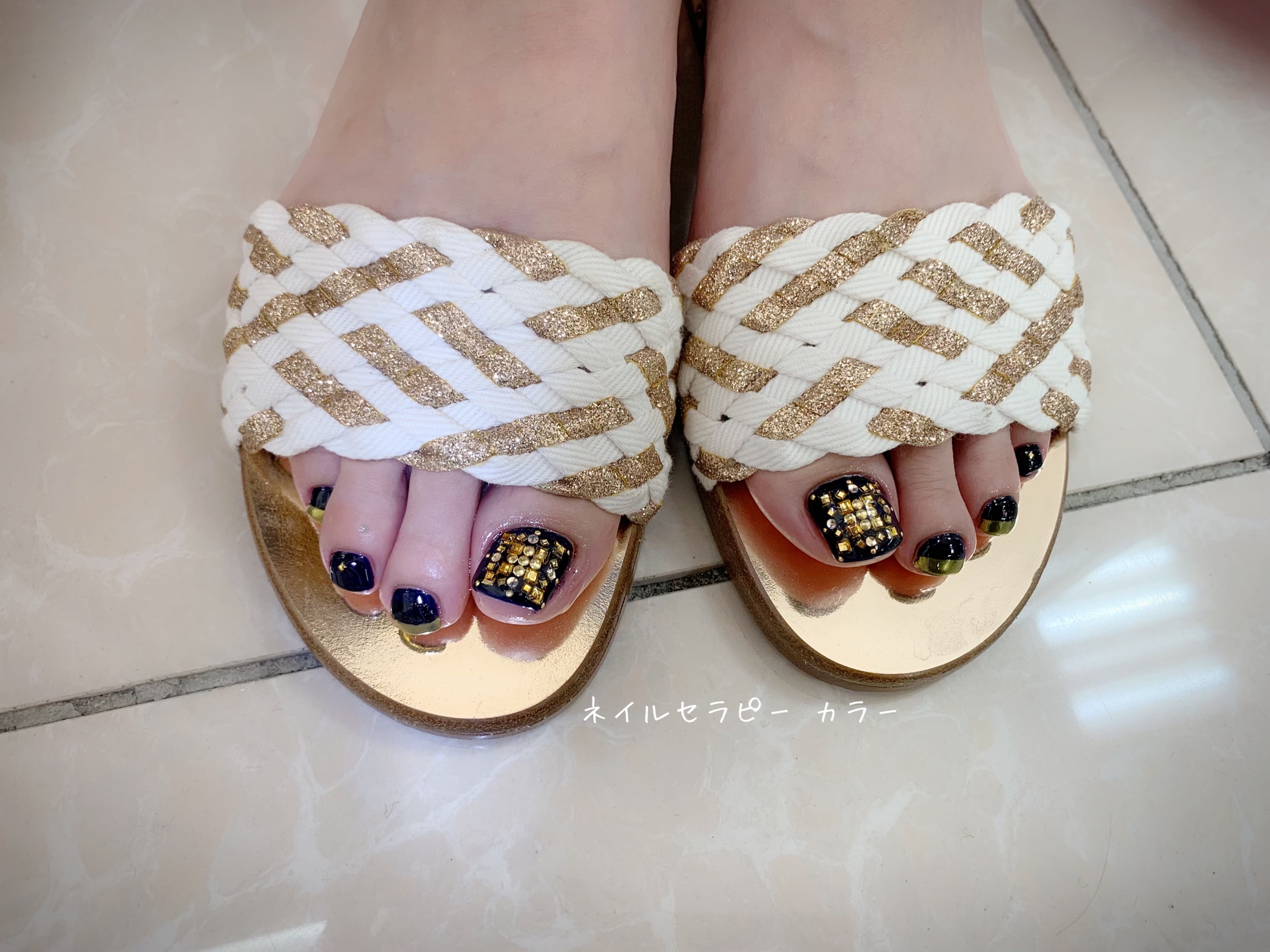 ブラック×ミラーゴールドフットネイル。。。